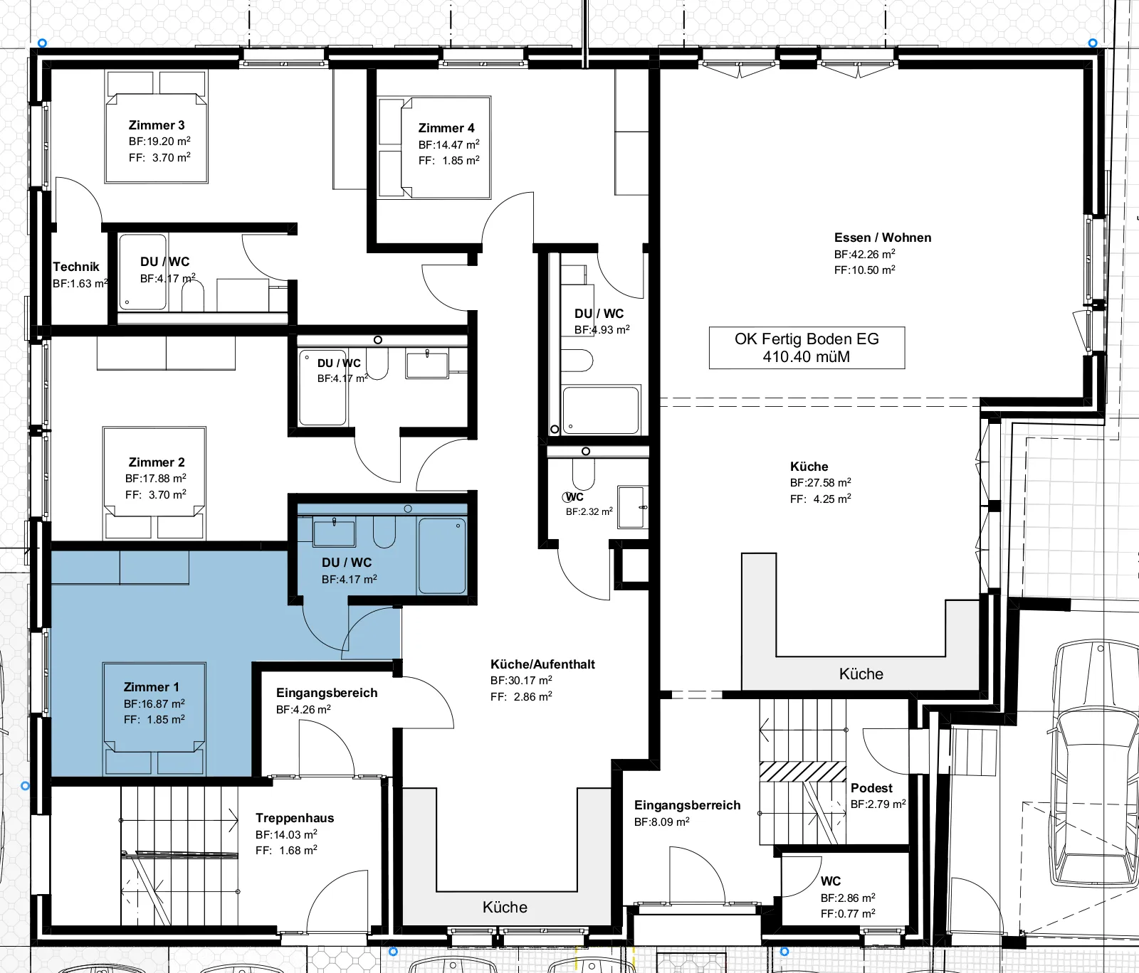 Wohnung 6 ErdgeschossGrösse: 21 m²Preis: Fr. 900.–/Monat (inkl. Nebenkosten) Zimmer mit eigenem Badezimmer mit Dusche/WC Geteilte Küche Geteilte Waschküche
